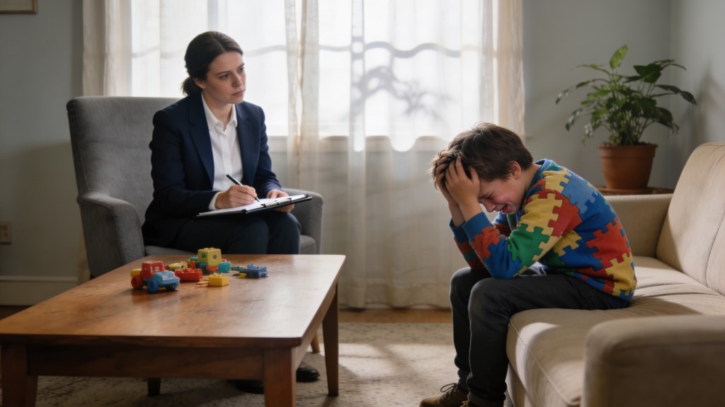 During the “No Interaction” phase, a child is forced into a state of total social isolation. They are left to endure their own escalating distress in a barren room while the only adult present remains a silent, unmoving statue. This experience teaches the autistic child that even their most desperate cries for help or acts of self-injury will be met with absolute, calculated isolation.